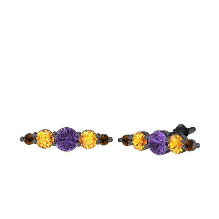 Ametist, sitrin ve dumanlı kuvars 925 ayar siyah rodyum kaplama gümüş küpe