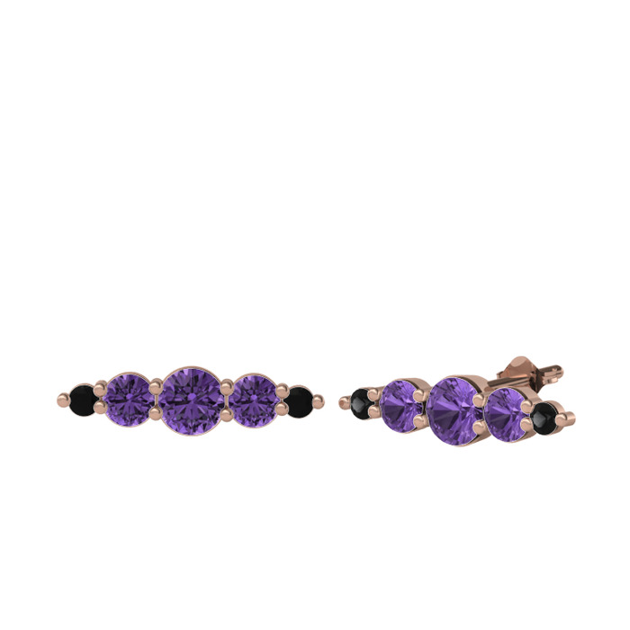Ametist ve siyah zirkon 925 ayar rose altın kaplama gümüş küpe