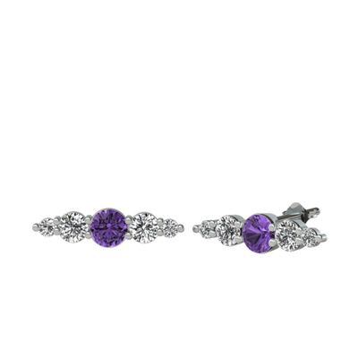 Ametist, swarovski ve beyaz zirkon 18 ayar beyaz altın küpe