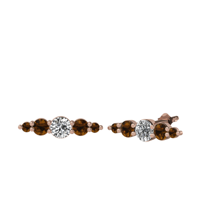 Beyaz zirkon ve dumanlı kuvars 18 ayar rose altın küpe