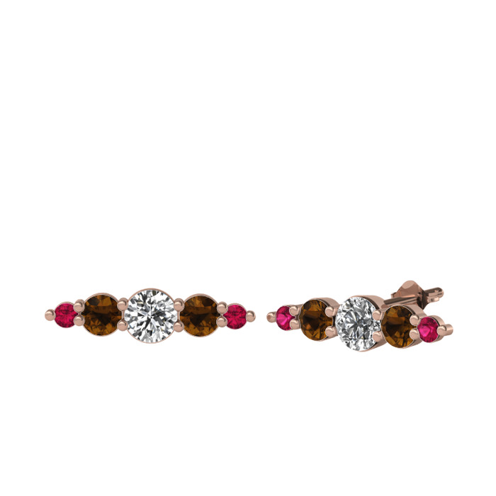 Beyaz zirkon, dumanlı kuvars ve rodolit garnet 18 ayar rose altın küpe