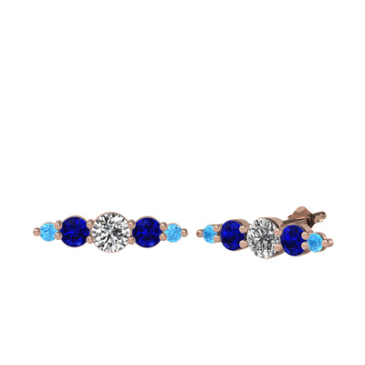Beyaz zirkon, lab safir ve akuamarin 14 ayar rose altın küpe