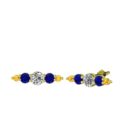 Beyaz zirkon, lab safir ve sitrin 925 ayar altın kaplama gümüş küpe