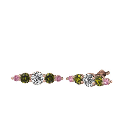 Beyaz zirkon, peridot ve pembe kuvars 14 ayar rose altın küpe