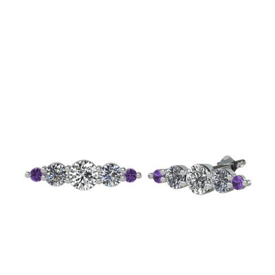 Beyaz zirkon, pırlanta ve ametist 8 ayar beyaz altın küpe (0.12 karat)