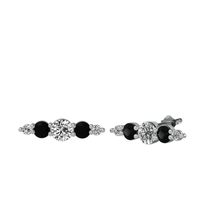 Beyaz zirkon ve siyah zirkon 18 ayar beyaz altın küpe