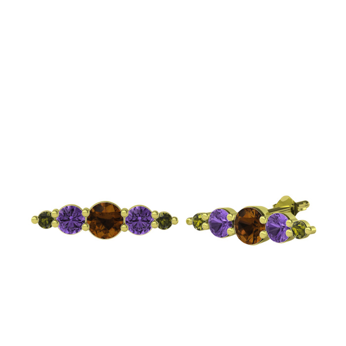 Dumanlı kuvars, ametist ve peridot 8 ayar altın küpe