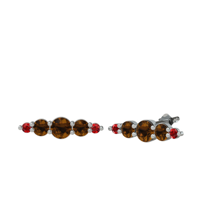 Dumanlı kuvars ve garnet 14 ayar beyaz altın küpe