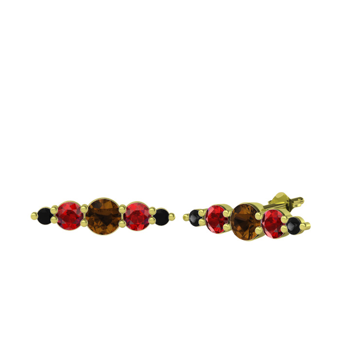 Dumanlı kuvars, garnet ve siyah zirkon 925 ayar altın kaplama gümüş küpe