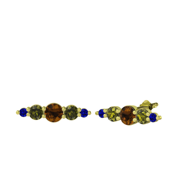 Dumanlı kuvars, peridot ve lab safir 925 ayar altın kaplama gümüş küpe