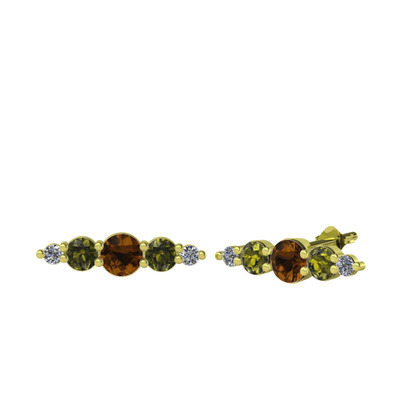 Dumanlı kuvars, peridot ve pırlanta 14 ayar altın küpe (0.03 karat)