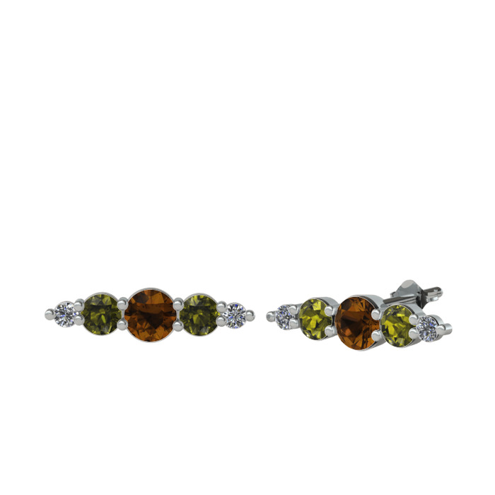 Dumanlı kuvars, peridot ve pırlanta 14 ayar beyaz altın küpe (0.03 karat)