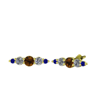 Dumanlı kuvars, pırlanta ve lab safir 18 ayar altın küpe (0.12 karat)