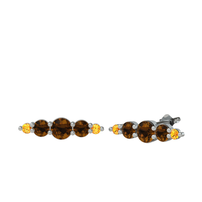 Dumanlı kuvars ve sitrin 18 ayar beyaz altın küpe