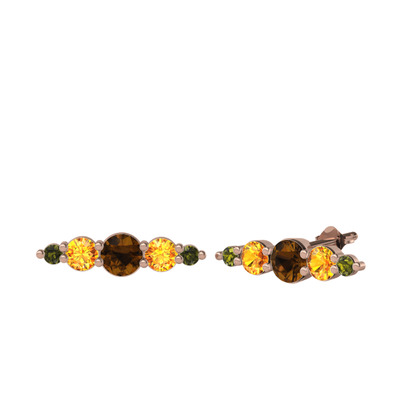 Dumanlı kuvars, sitrin ve peridot 14 ayar rose altın küpe