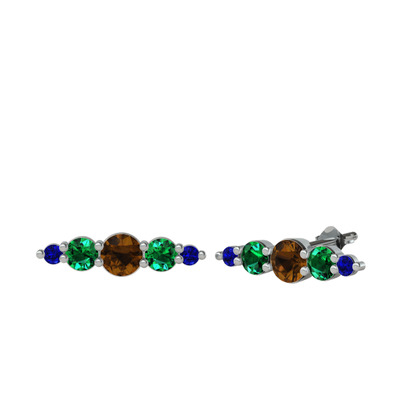 Dumanlı kuvars, yeşil kuvars ve lab safir 18 ayar beyaz altın küpe