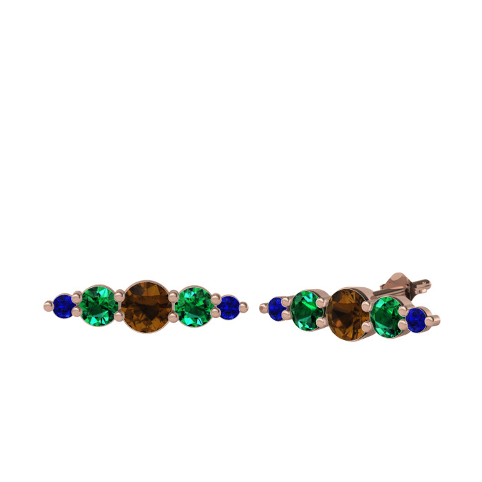 Dumanlı kuvars, yeşil kuvars ve lab safir 925 ayar rose altın kaplama gümüş küpe