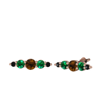 Dumanlı kuvars, yeşil kuvars ve siyah zirkon 14 ayar rose altın küpe