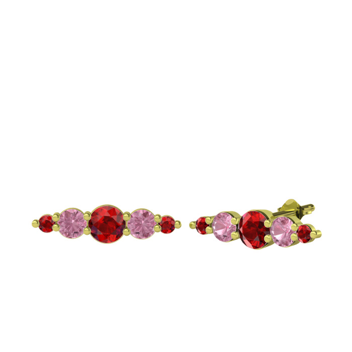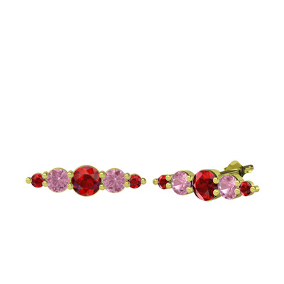 Garnet ve pembe kuvars 18 ayar altın küpe