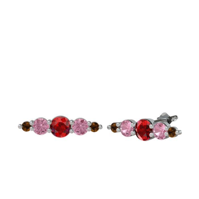 Garnet, pembe kuvars ve dumanlı kuvars 14 ayar beyaz altın küpe