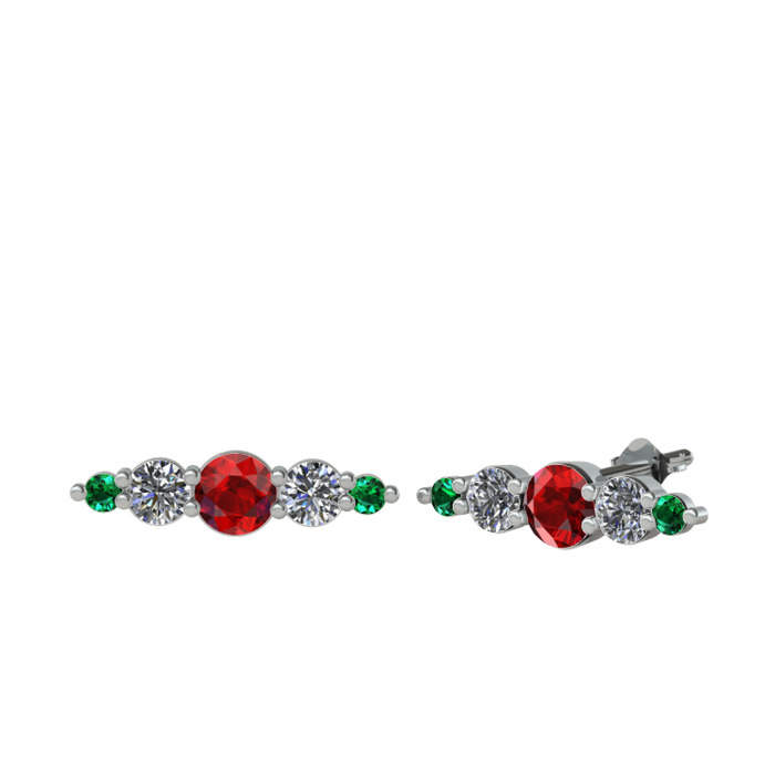 Garnet, pırlanta ve yeşil kuvars 925 ayar gümüş küpe (0.12 karat)