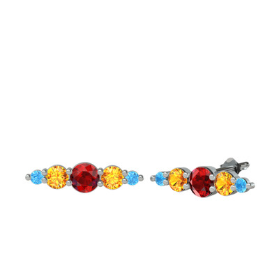 Garnet, sitrin ve akuamarin 8 ayar beyaz altın küpe