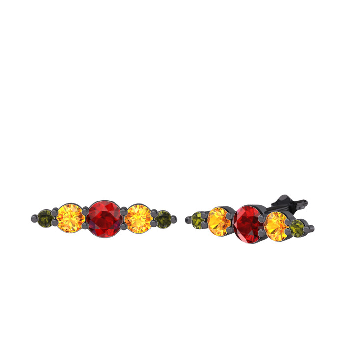 Garnet, sitrin ve peridot 925 ayar siyah rodyum kaplama gümüş küpe