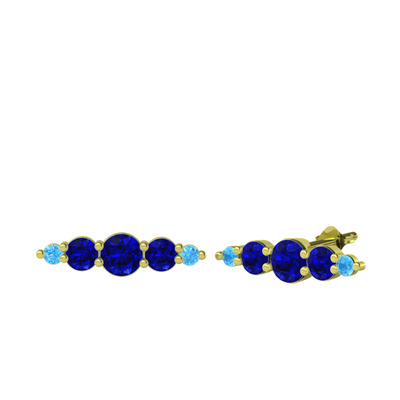 Lab safir ve akuamarin 925 ayar altın kaplama gümüş küpe