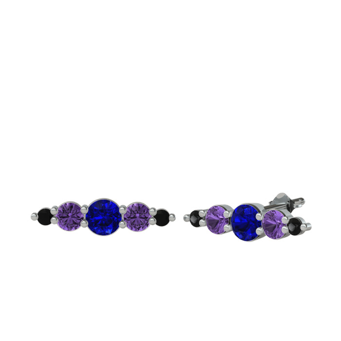 Lab safir, ametist ve siyah zirkon 18 ayar beyaz altın küpe