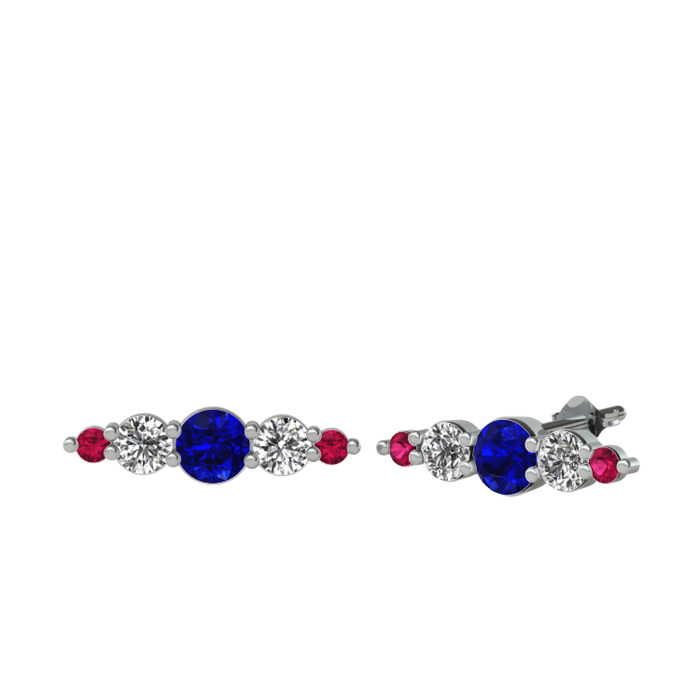 Lab safir, beyaz zirkon ve rodolit garnet 925 ayar gümüş küpe