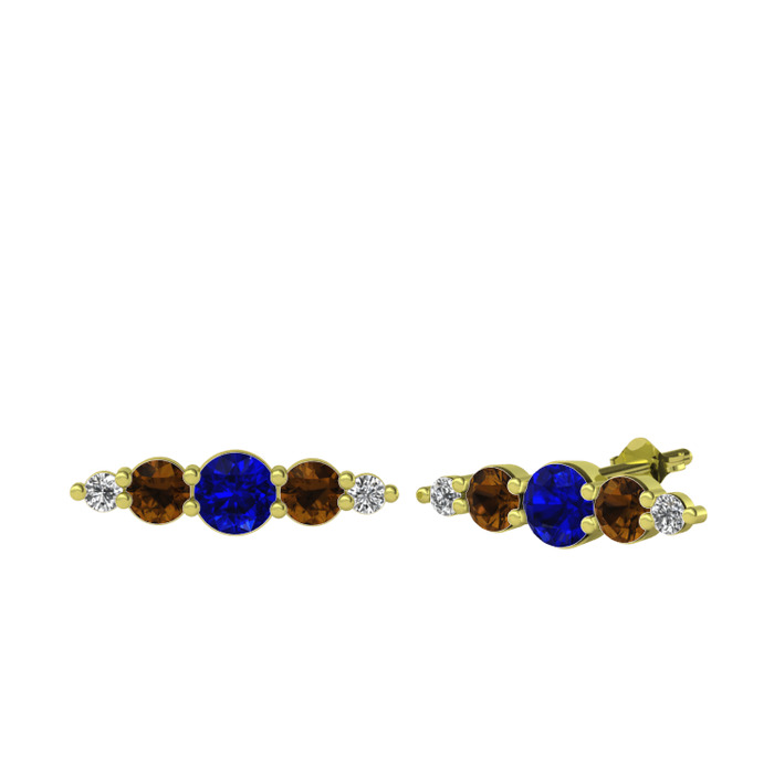 Lab safir, dumanlı kuvars ve swarovski 14 ayar altın küpe