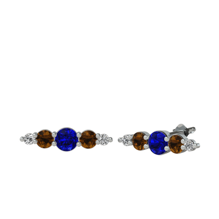 Lab safir, dumanlı kuvars ve swarovski 925 ayar gümüş küpe