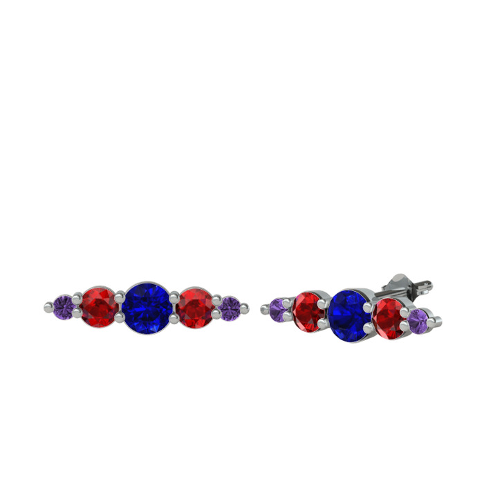 Lab safir, garnet ve ametist 18 ayar beyaz altın küpe