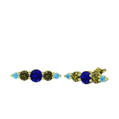 Lab safir, peridot ve akuamarin 14 ayar altın küpe