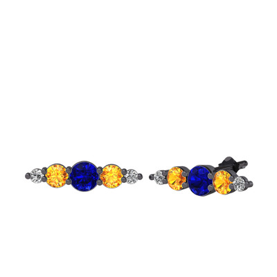 Lab safir, sitrin ve beyaz zirkon 925 ayar siyah rodyum kaplama gümüş küpe