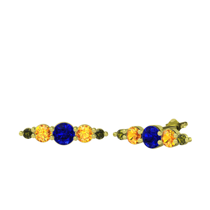 Lab safir, sitrin ve peridot 8 ayar altın küpe