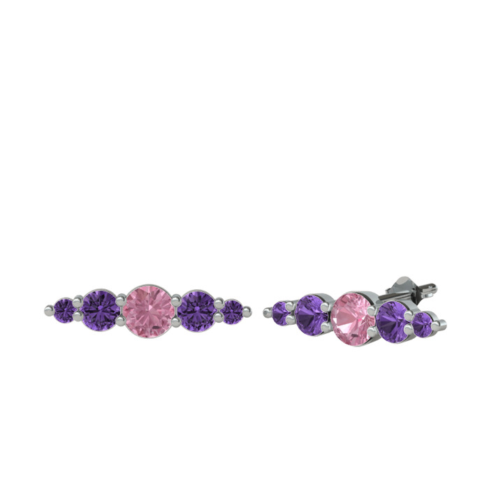 Pembe kuvars ve ametist 18 ayar beyaz altın küpe