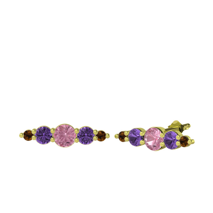 Pembe kuvars, ametist ve dumanlı kuvars 8 ayar altın küpe