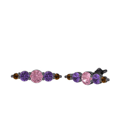 Pembe kuvars, ametist ve dumanlı kuvars 925 ayar siyah rodyum kaplama gümüş küpe