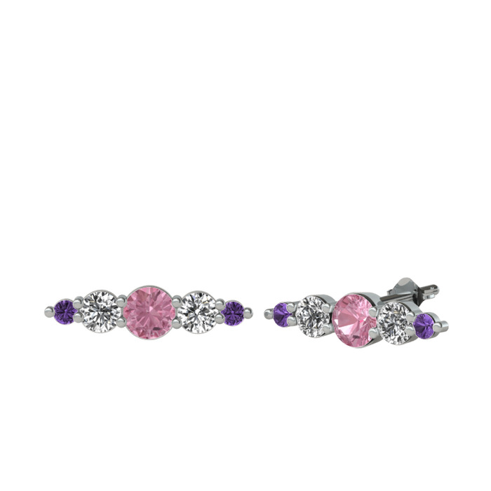 Pembe kuvars, beyaz zirkon ve ametist 18 ayar beyaz altın küpe