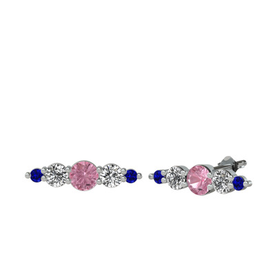 Pembe kuvars, beyaz zirkon ve lab safir 14 ayar beyaz altın küpe