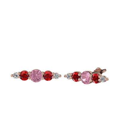 Pembe kuvars, garnet ve swarovski 8 ayar rose altın küpe