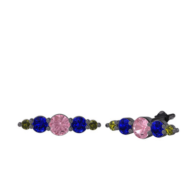 Pembe kuvars, lab safir ve peridot 925 ayar siyah rodyum kaplama gümüş küpe
