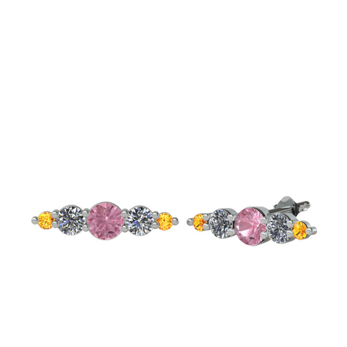 Pembe kuvars, pırlanta ve sitrin 18 ayar beyaz altın küpe (0.12 karat)