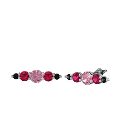 Pembe kuvars, rodolit garnet ve siyah zirkon 925 ayar gümüş küpe