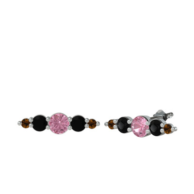 Pembe kuvars, siyah zirkon ve dumanlı kuvars 18 ayar beyaz altın küpe