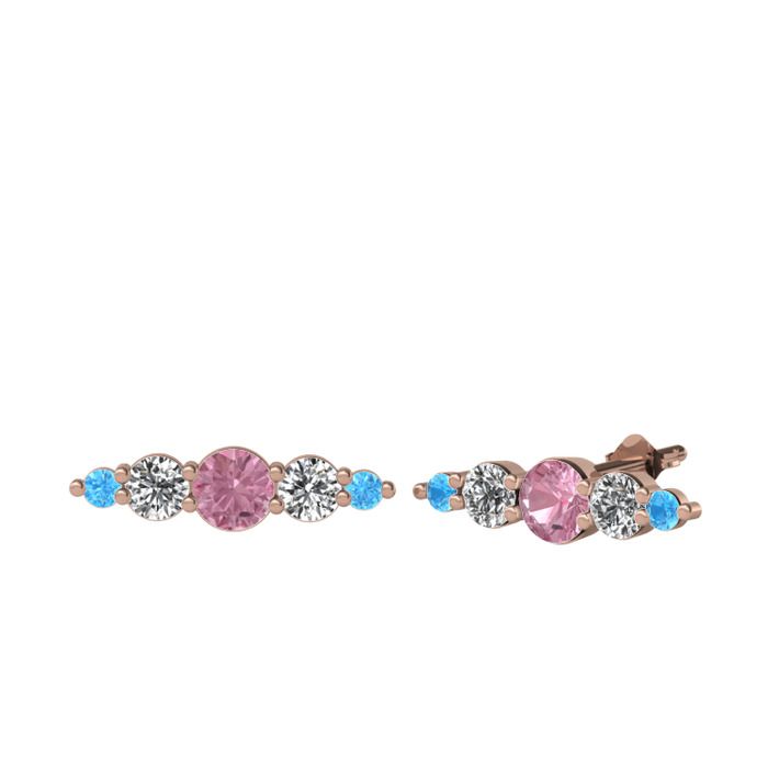 Pembe kuvars, swarovski ve akuamarin 925 ayar rose altın kaplama gümüş küpe