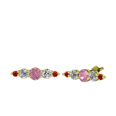 Pembe kuvars, swarovski ve garnet 925 ayar altın kaplama gümüş küpe