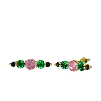 Pembe kuvars, yeşil kuvars ve siyah zirkon 8 ayar altın küpe