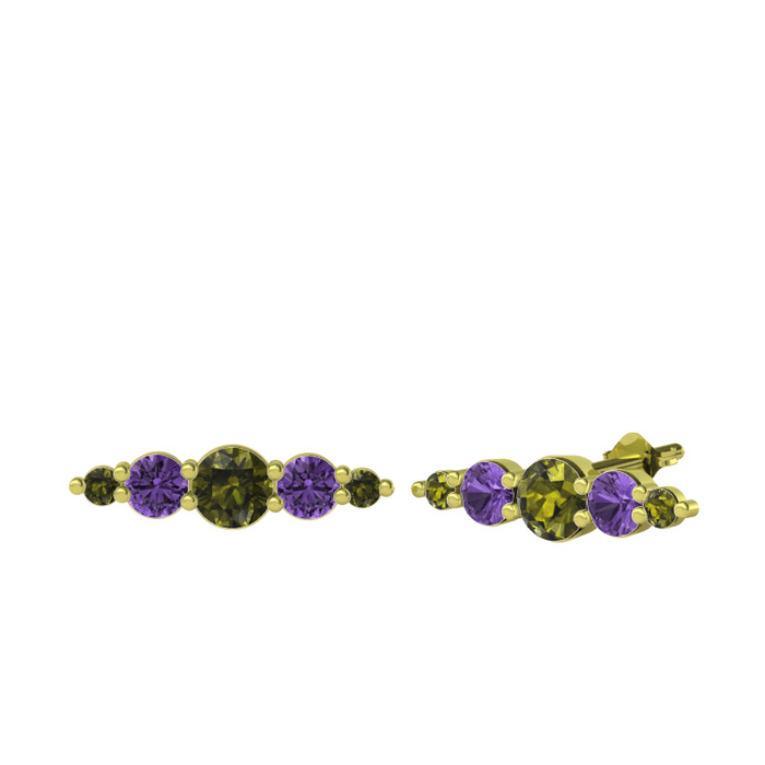 Peridot ve ametist 8 ayar altın küpe